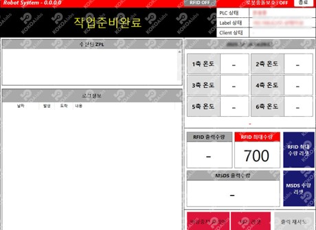 협동로봇에 입력된 제어 정보를 이용하여 RFID라벨을 부착 하고 검사 후 특수물질 관리 라벨 부착 후 검증 프로그램