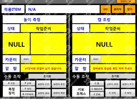 2개의 제품이 정상적으로 체결이 되었는지 검사하여 작업자에게 알려주고 다음 설비로 이동 할 수 있도록 MES 전송